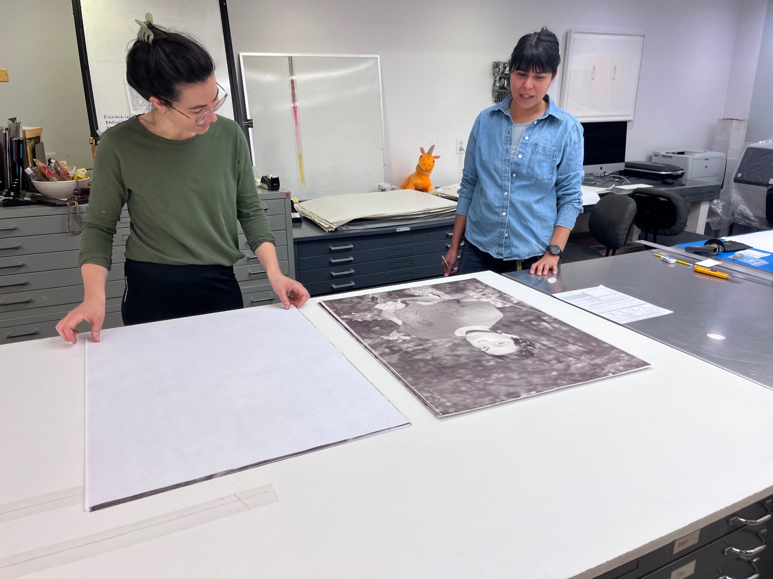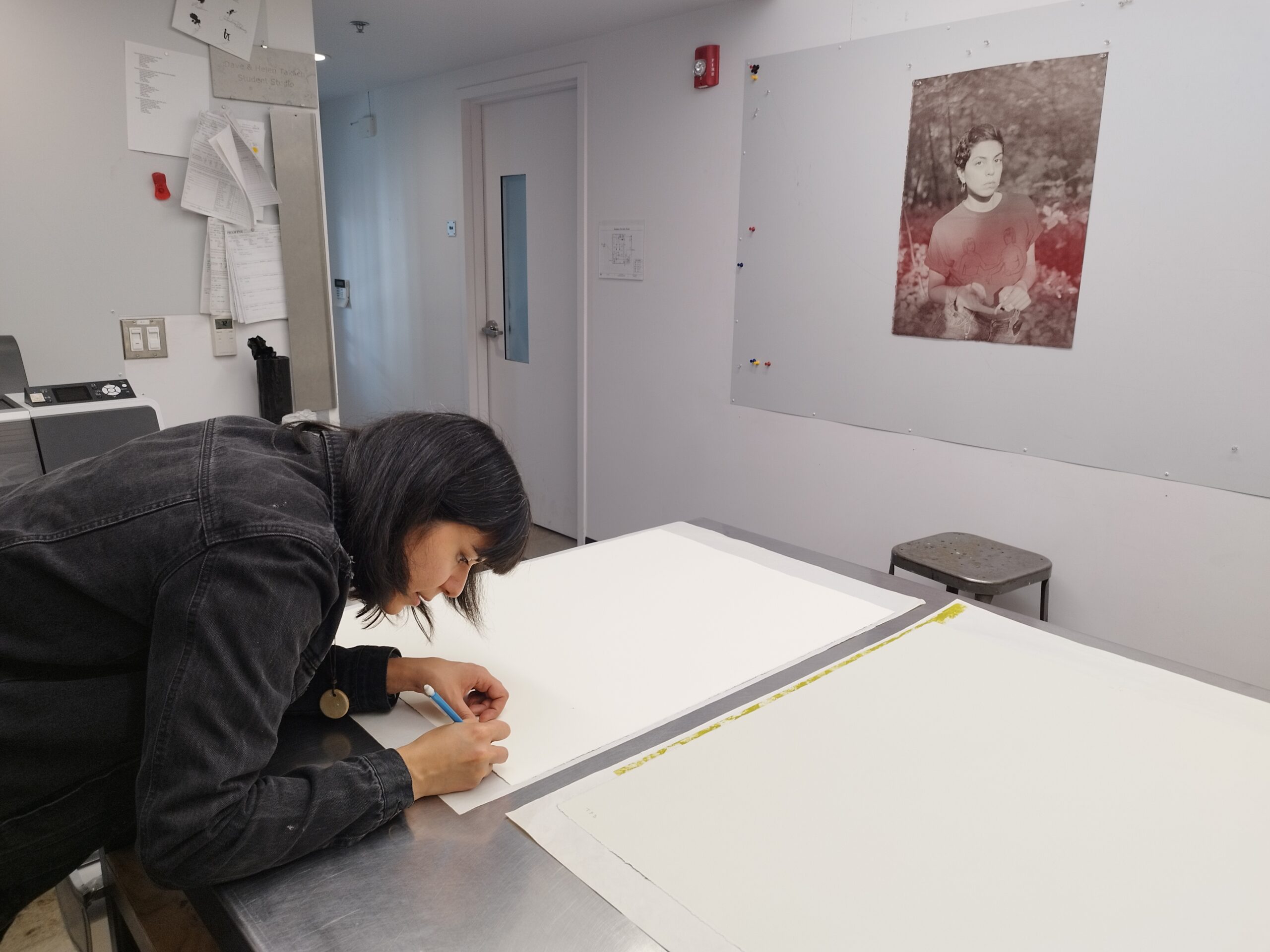 Para esta colaboración se quiso tender un puente entre su trabajo fotográfico y la litografía utilizando una fotografía suya que se adaptó con una trama de puntos para ser imprimible.