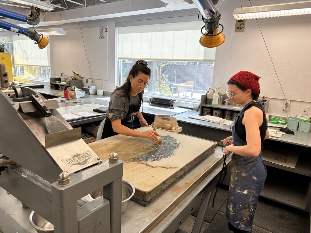 Todo lo que el artista tiene que aportar es el deseo de descubrir lo que el grabado puede ofrecer. Desde el studio tenemos experiencia colaborando con artistas de diferentes lugares y sensibilidades artísticas, guiando al artista a través del proceso y proporcionándole las herramientas para alcanzar sus objetivos artísticos.