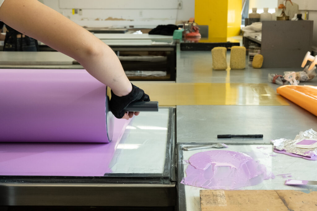 El estudio financia estos proyectos y recibe el reembolso a través de las ventas de los grabados editados Los artistas invitados trabajan individualmente con nosotros durante un periodo que suele ser de 1 a 3 semanas. En estrecha colaboración con el artista, le guiamos a lo largo del proceso y experimentamos con distintos métodos de impresión. A través del proceso colaborativo se realizan -pruebas de impresión- probando y ajustando sobre el color, el papel y la imagen. La colaboración culmina cuando el artista firma una de las pruebas como el -bueno para imprimir-, BAT en francés.